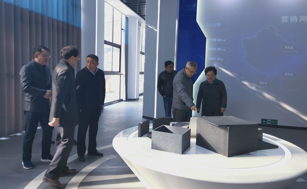 展厅交流期间,张鉴武主任对fun88入口目前企业上市的推进工作情况进行关心与询问,董事长邓达琴向张鉴武主任一一陈述,详细地介绍公司上市的工作进度、情况,认真地讲解了本公司的核心产品、用途、销售地区、产品出口国家及公司产值情况。
